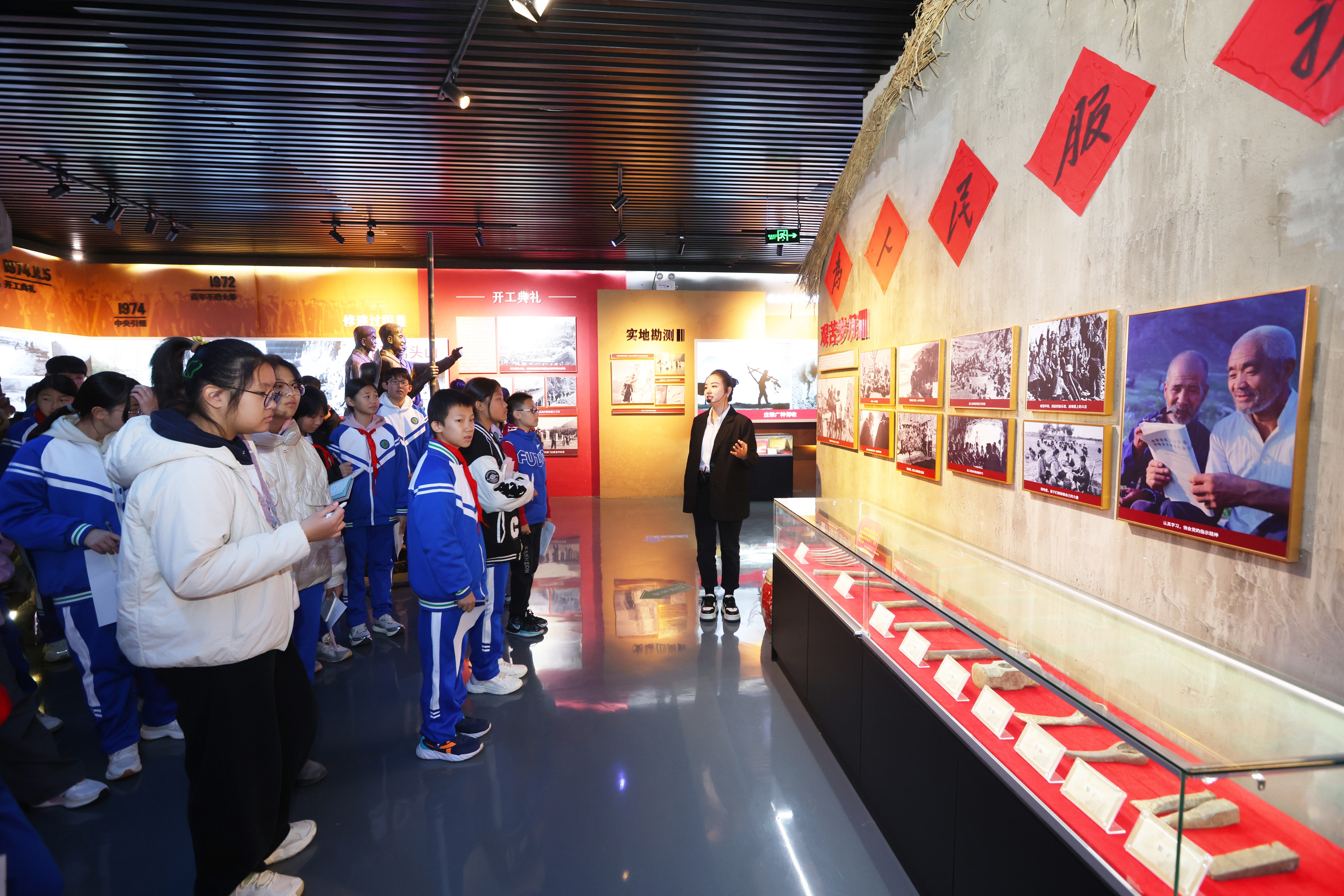 9时5分, ,,,,,,前往运动第二站——胜天渠纪念馆。。。。。。走进纪念馆, ,,,,,,各人似乎穿越时空, ,,,,,,回到了开山修渠的峥嵘岁月。。。。。。在解说员的向导下, ,,,,,,通过声光电多媒体手艺、实物造景与历史档案相团结, ,,,,,,再现了20世纪70年月张坊人民战天斗地的水利事业, ,,,,,,进一步加深了对这段绚烂历史的相识, ,,,,,,深刻体会到“信心坚定、团结协作、艰辛拼搏、造福黎民”的精神。。。。。。